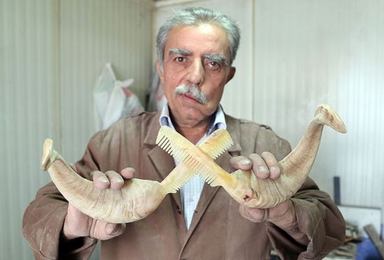 Doğu ve güneydoğu anadolu bölgesi nin tek kemik tarak ustası olan şanlıurfalı mahmut çaycı koç boynuzu rengarenk tarağa dönüştürüyor.